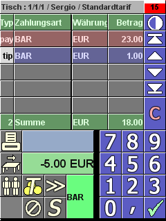 Auch die Eingabe von Trinkgeldern ist möglich.