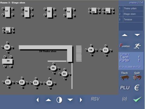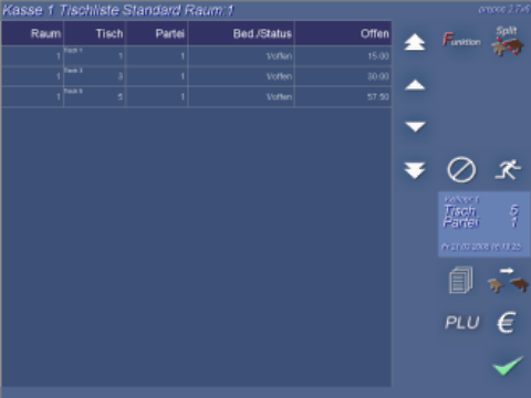 Wählen sie auch hier im Raumplaner keinen Tisch aus, sondern drücken erneut auf das Tisch Symbol gelangen Sie in die Tischliste. Hier sehen Ihre Kellner nur die von Ihnen Vom Raumplaner oder Kellner Tischliste aus. Kassieren |